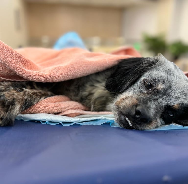 Candice wandered the streets for weeks, spotted by neighbors with her puppies, all of whom had passed away. Concerned by a potential severe injury to her back end, they contacted animal control, leading to her rescue from the shelter and immediate rush to the ER. The doctor there informed rescuers that she had lost control of her rectal area and was in septic shock, recommending humane euthanasia.