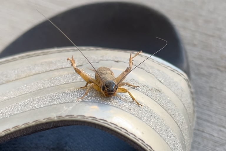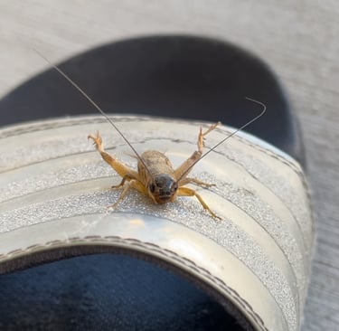 I found Mr. Cricket inside my sandal one day. I immediately noticed that he was not using his hind limb and he would not move.