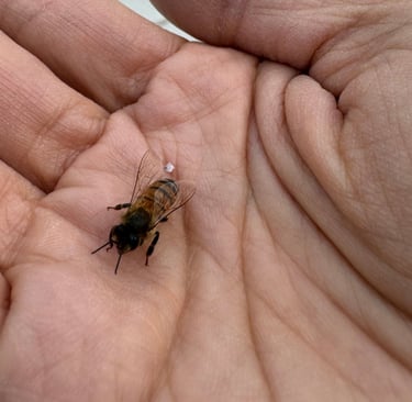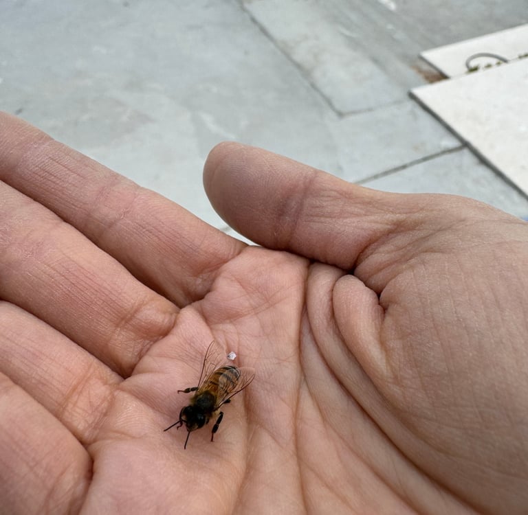 Ms. Bee explained that she wanted to stay on my hand because it was warm and would help her dry her body faster. It was a fascinating connection, as if she trusted me to provide her with the comfort she needed.