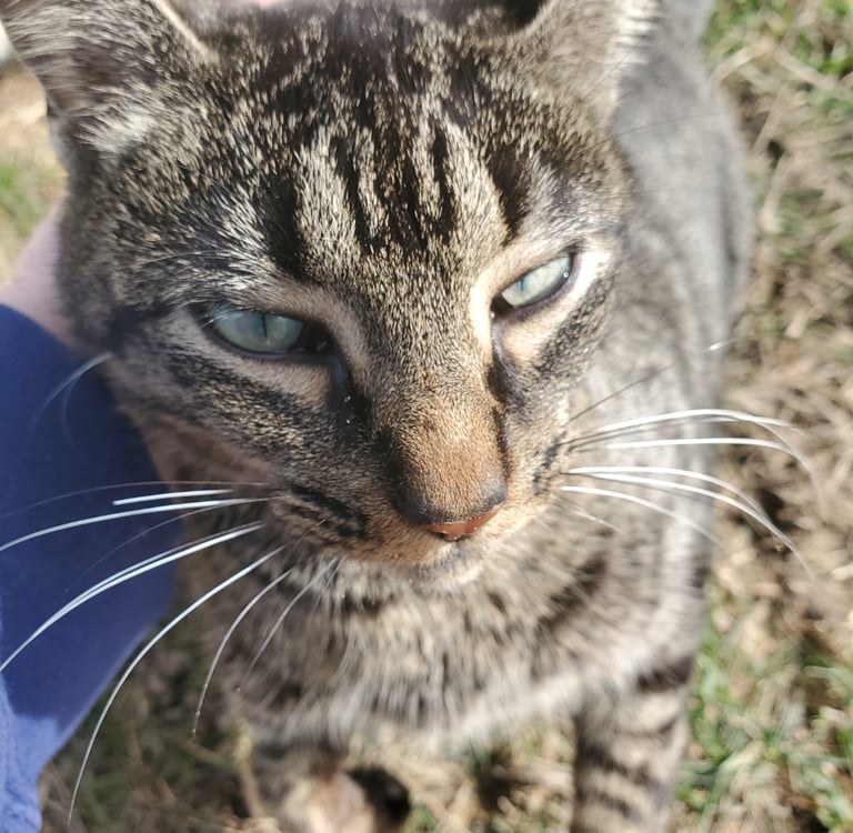 I was asked to check in with one of the feral cats who lives in the burns. Her name is Stripes. My friend goes to the open burns field to feed many feral cats there. She said she has not seen Stripes for 3 weeks, which is unusual for her not to show up at feeding time. When I checked in with her, she told me that other cats and dogs there are not nice to her, and she needed to move to find a safe place to live.