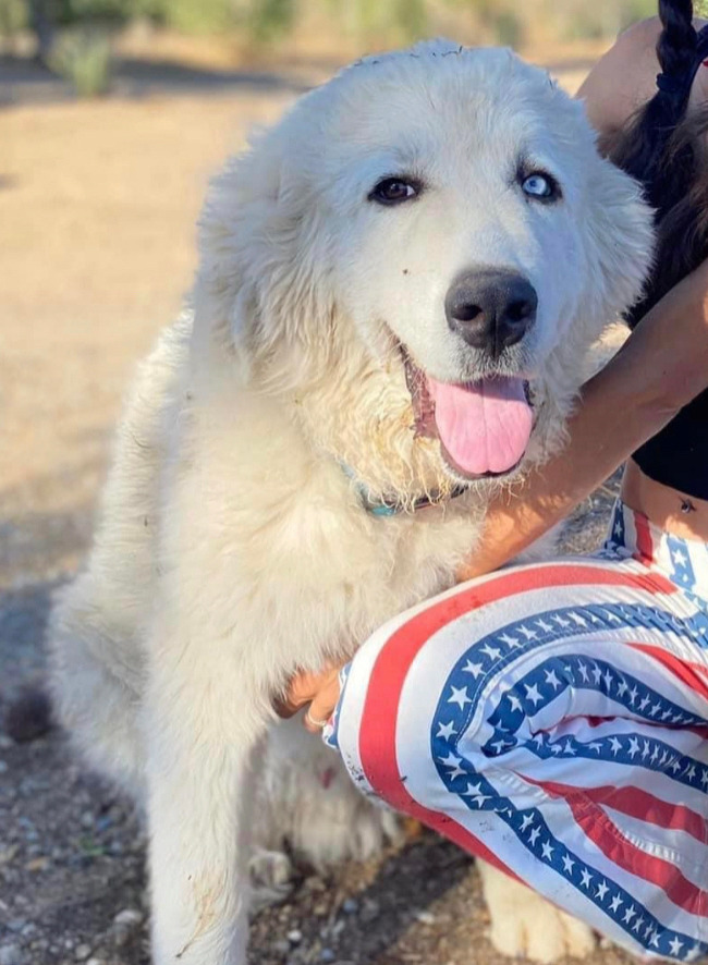 She said this dog has exactly one blue eye just like Major and the same fur color as Sarge. She said she decided to foster him and took him home. As soon as he arrived at her house, he walked right into the porch where Major and Sarge used to sleep.