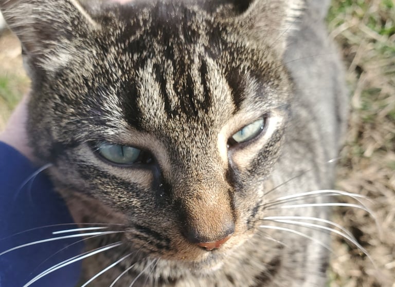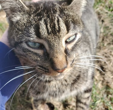 I was asked to check in with one of the feral cats who lives in the burns. Her name is Stripes. My friend goes to the open burns field to feed many feral cats there. She said she has not seen Stripes for 3 weeks, which is unusual for her not to show up at feeding time. When I checked in with her, she told me that other cats and dogs there are not nice to her, and she needed to move to find a safe place to live.